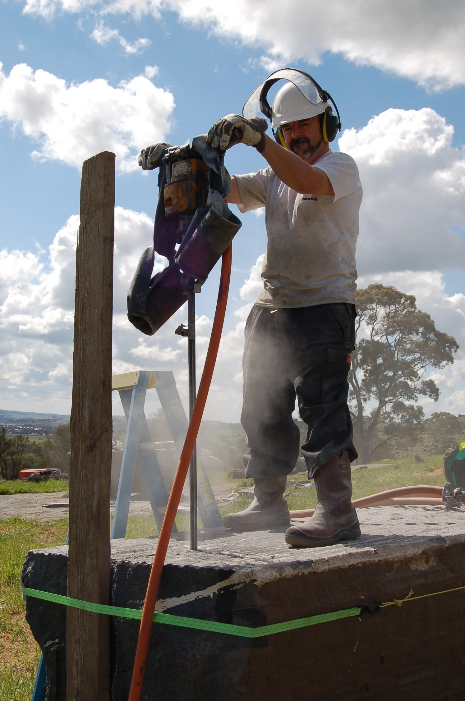 Dan Archer was invited alongside a number of other international sculptors to make a work in the Barossa valley. His work, created from a massive block of black granite was split and worked to create a slot for viewing a selected view of the landscape beyond. It is now located within the Barossa Sculpture Park.