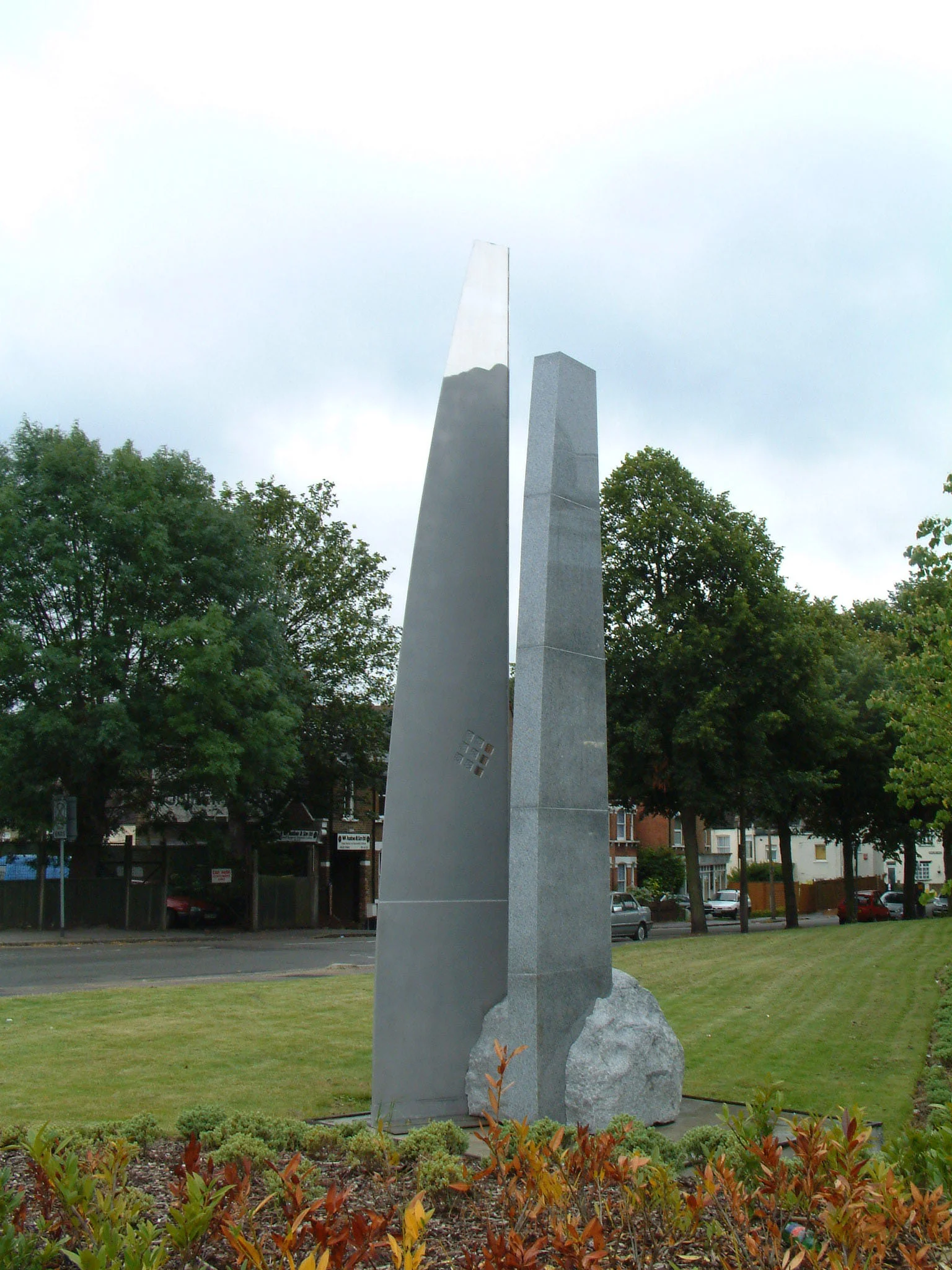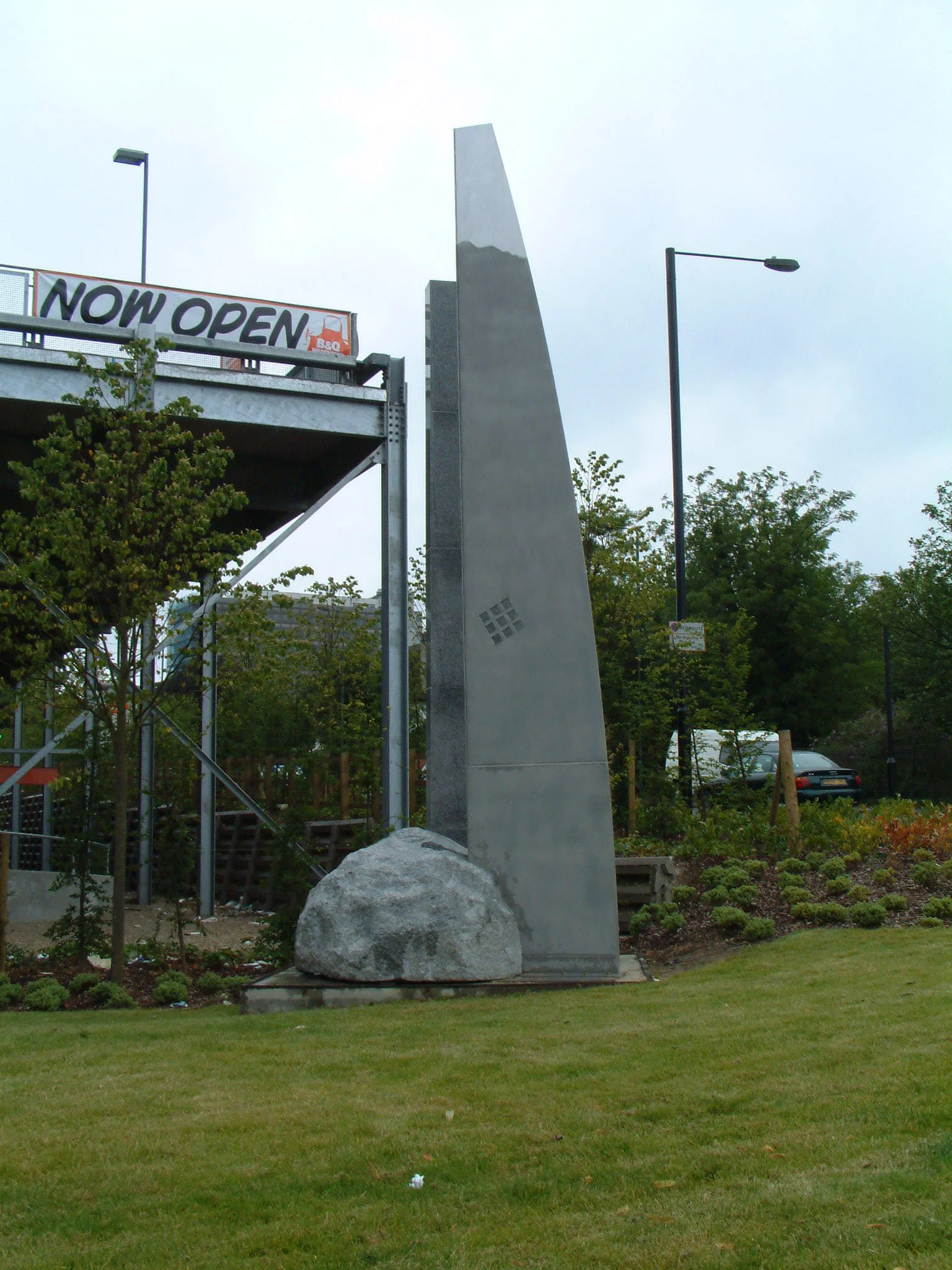 5 x 1.5 x 1.5 m. Grey granite, Stainless steel. London Borough of Sutton, B+Q
