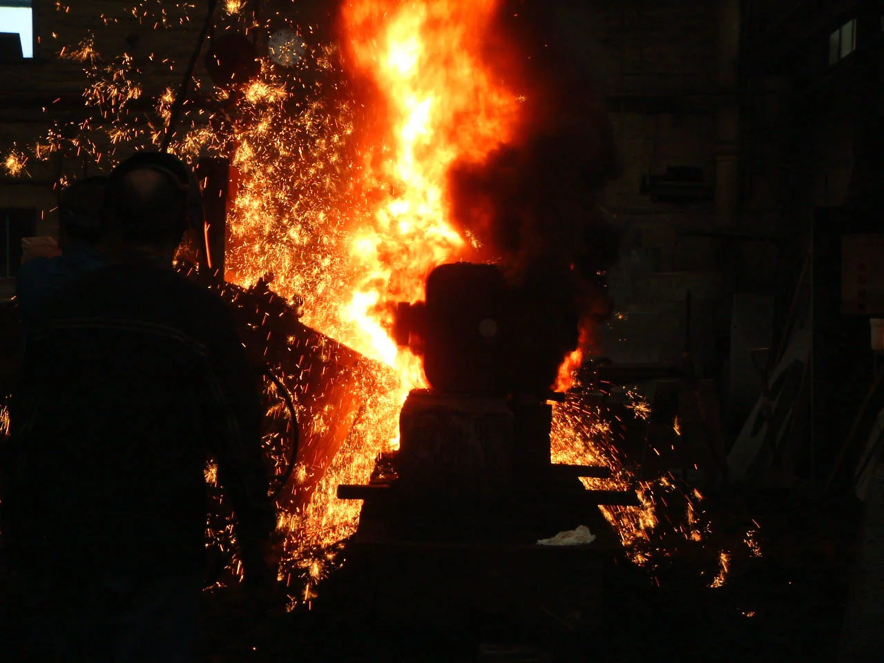 Iron being poured at H Downs and Sons foundry in Huddersfield