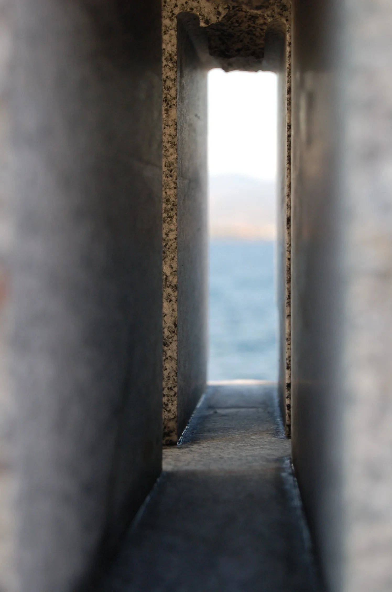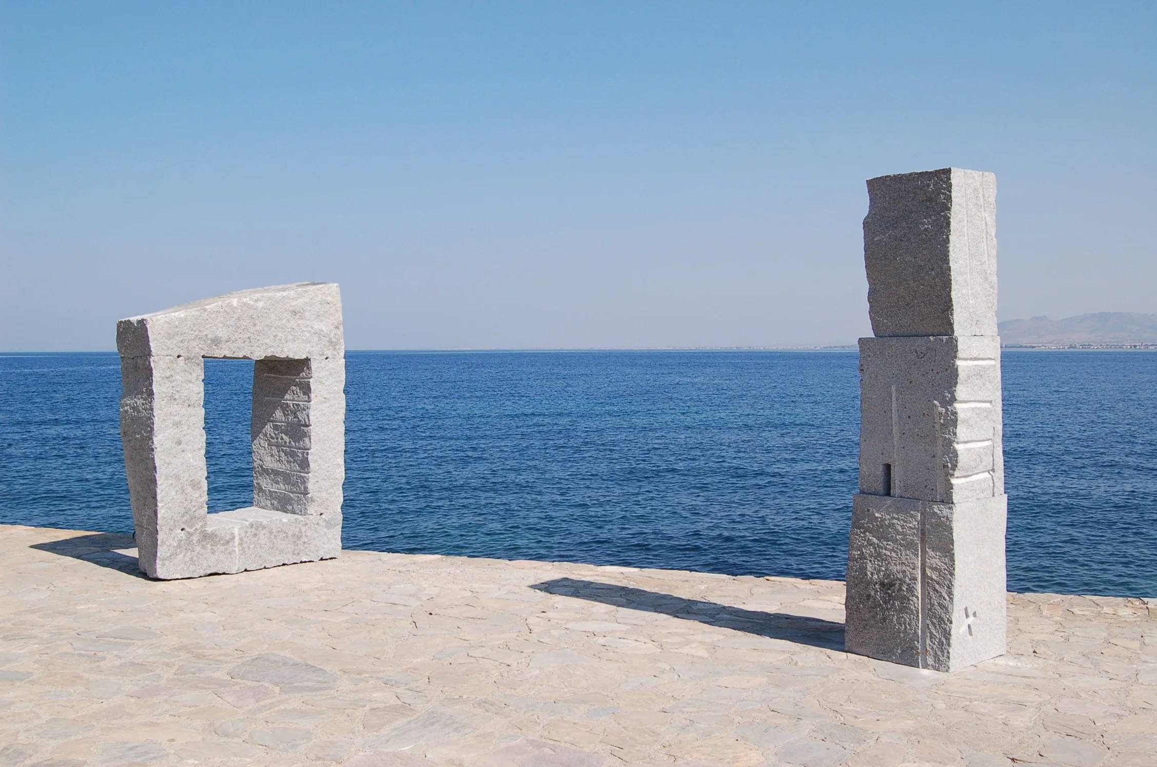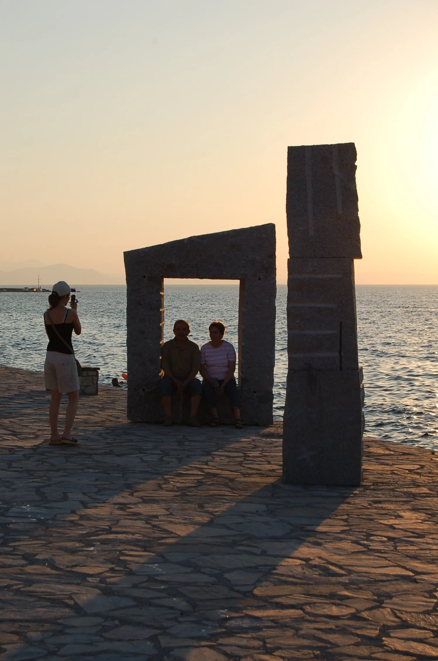 In 2006 Dan was invited to attend in the first International Sculpture Symposium in Dikili, Izmir in Turkey. Working in local granite, the work combines a portal form and tower which includes 3 blocks stacked and worked to include slots allowing views across the sea to the island of Lesbos.