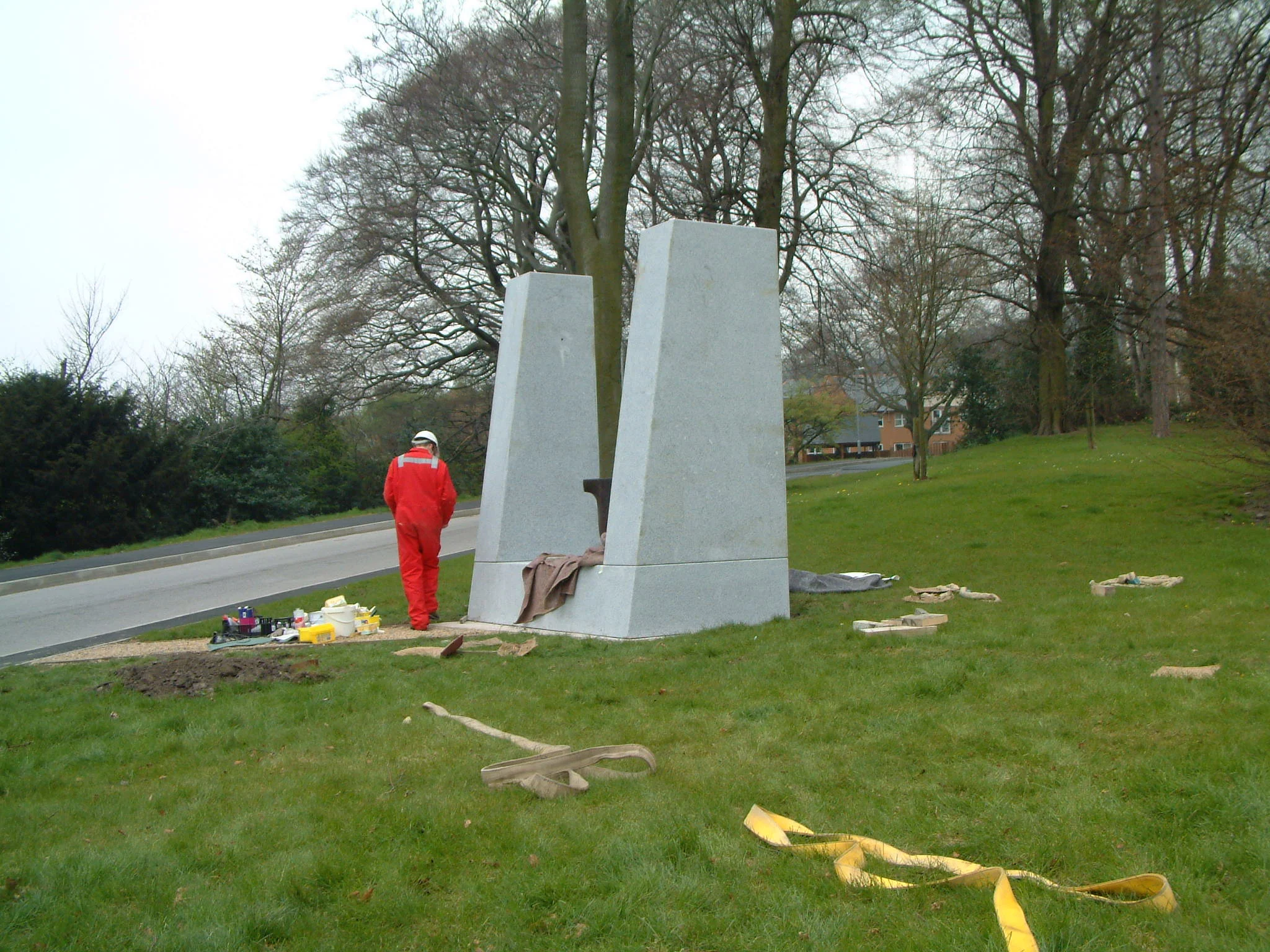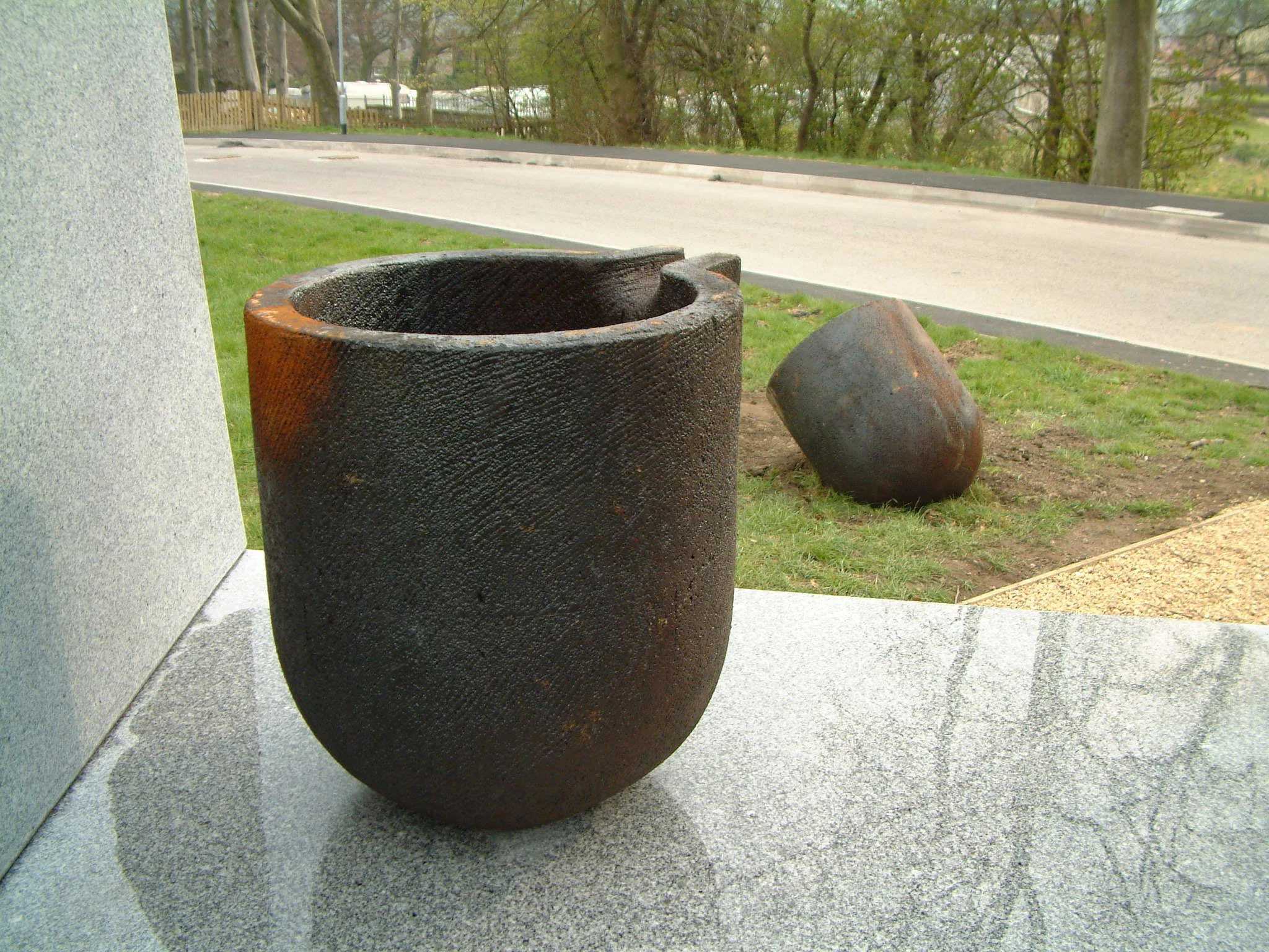 Archer was commissioned by Chesterfield Borough Council to make this work for the re-development of Woodmere Country Park. The work combines two recurring themes in Archer’s work, the doorway/Portal form representing transition, and two crucibles in cast iron, representing transformation (such as the transformation from base material to art in the crucible and moulds of a bronze art foundry.) The use of iron also refers to the former industrial heritage of the site.